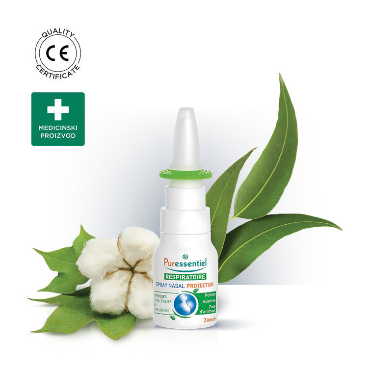 Puressentiel zaštitni sprej za nos posebno je formuliran kako bi stvorio zaštitni film na nosnoj sluznici, sprječavajući prodiranje alergena iz okoliša i biljaka prisutnih u zraku i na tkaninama.